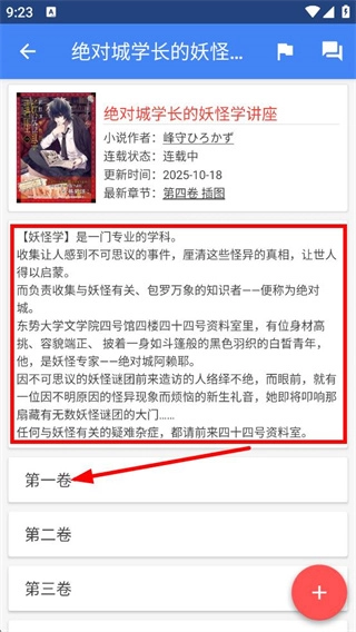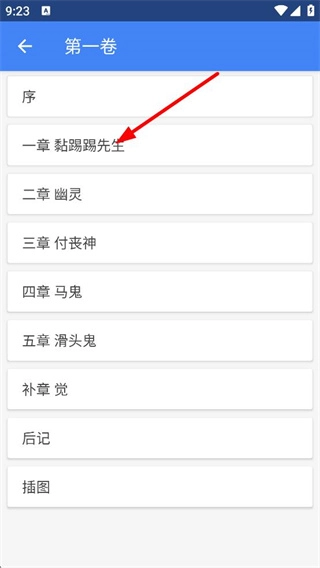3、在小说详情页,点击第一卷,即可进入第一卷的章节列表页面。
