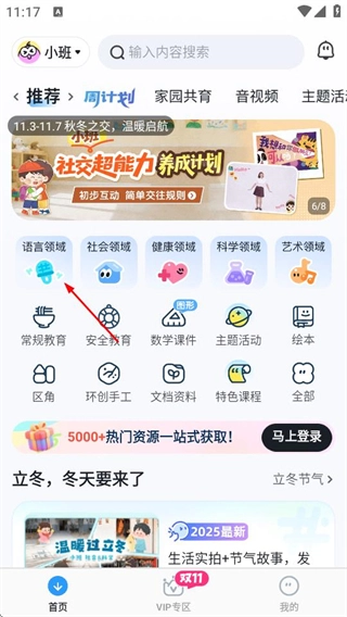 1、访问幼师贝壳首页后,点击语言领域选项,即可进入领域活动页面。