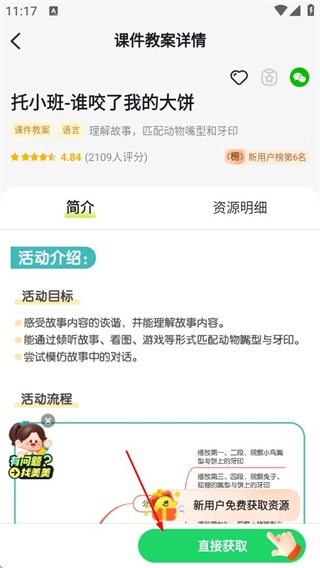 3、在课件教案详情页面,点击“直接获取”按钮,即可进入登录选择页面。