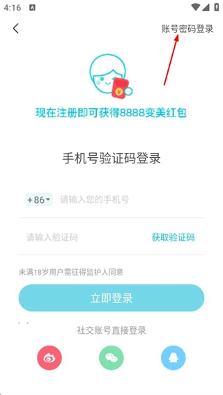 在登录页面,点击右上角的账号密码登录选项,即可切换至账号密码登录界面。