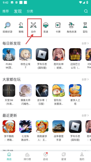 2、在商店页面,点击动作分类标签,进入动作分类游戏列表页面。