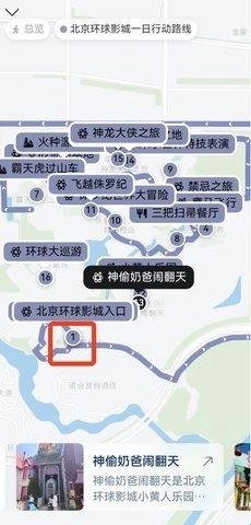 向下滑动页面即可查看一日行动路线地图,点击右上角按钮可进行全屏预览。