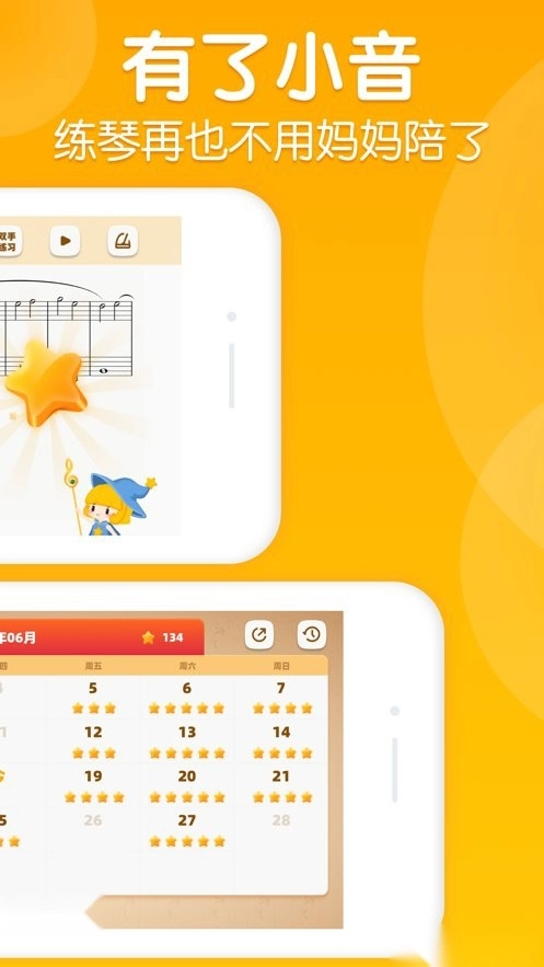 【多模式练习】提供跟弹练习与自由练习两种选择,搭配精准的钢琴键盘弹奏指引,助力快速纠正弹奏错误。