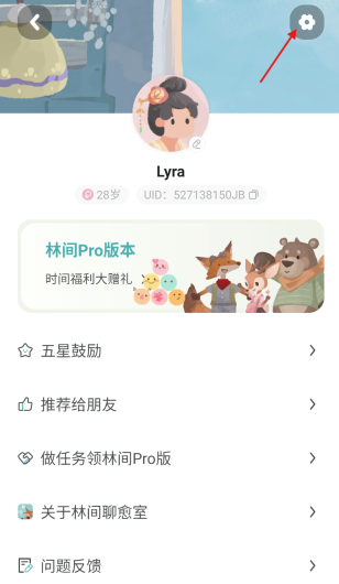 1、进入林间聊愈室的聊愈页面后,轻点顶部的头像图标,即可跳转至个人中心界面。
