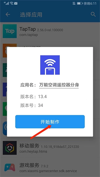 3在该环节中,能清晰呈现出待选应用的相关标识信息,包括其具体的名称、版本名称以及对应的版本号。在对这些信息进行核对无误后,我们只需点击【开始制作】这一选项,即可推进后续流程。