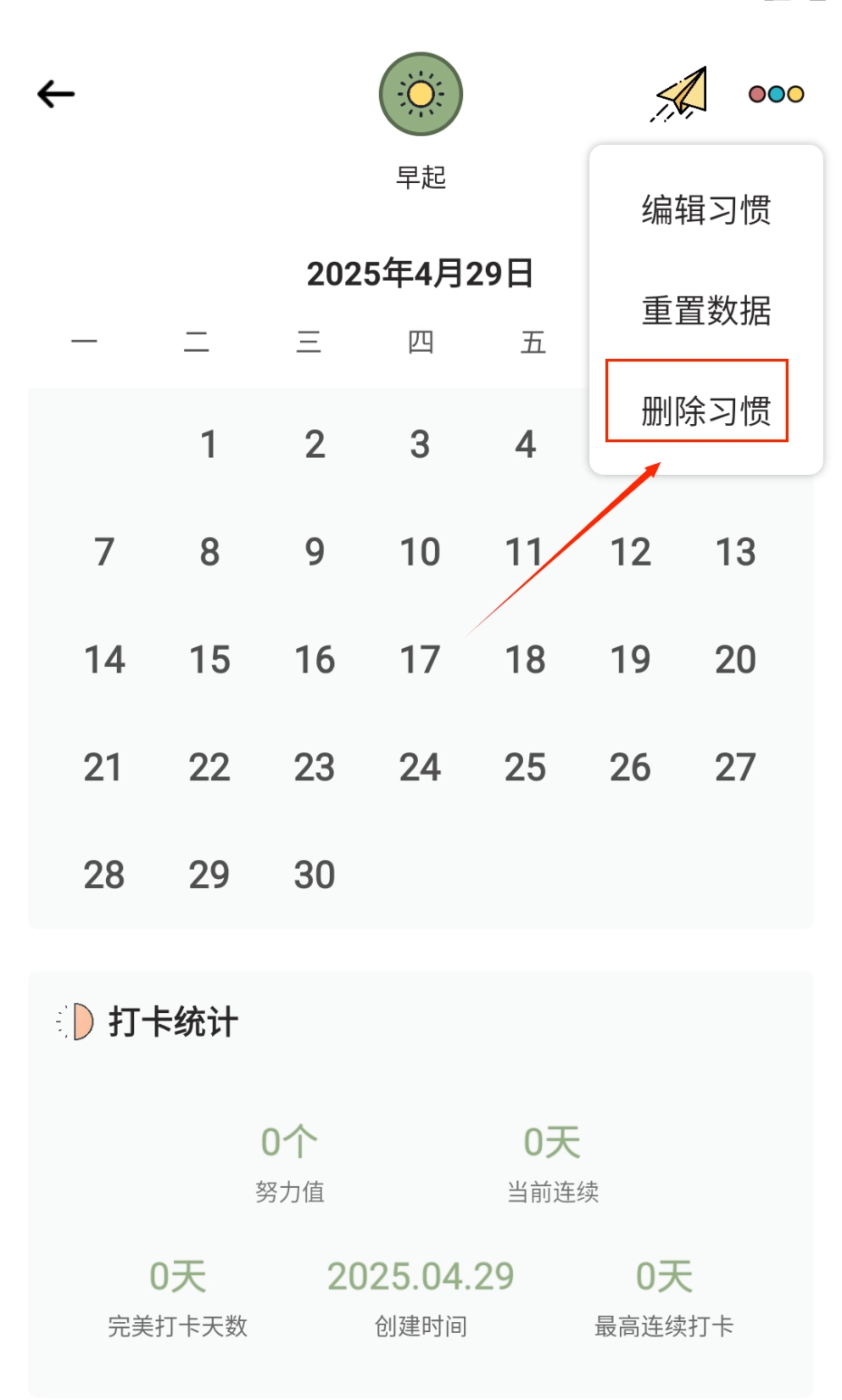 3、这样的话只需要在编辑习惯页面里选择下方“删除”功能,就能够直接将该习惯进行删除,从而完成清理。
