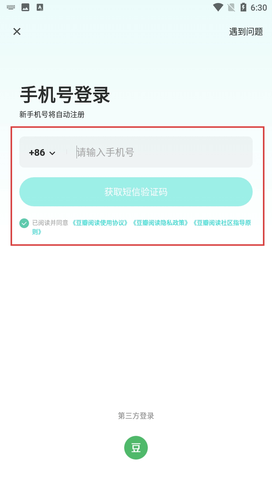 2、在登录界面,输入手机号码并点击【获取短信验证码】,准备登录操作。