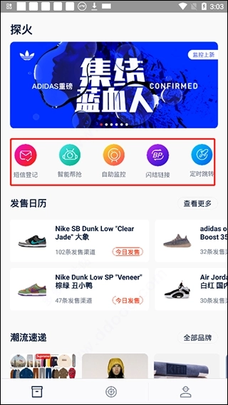 经常入手潮牌鞋的朋友应该都清楚,不少热门鞋款往往是限量发售的,想要抢到可不是件容易事。所以呢,今天给大家推荐“探火”这款工具——它是专门为潮流爱好者设计的手机抢购助手,能实时跟踪热门潮品的最新动态。这款应用除了整合了国内外优质潮流球鞋的商品信息外,还带有短信提醒、智能代抢、自主监控、快速结算链接、定时跳转等一系列实用功能,能帮用户更高效地参与到抢购活动中。