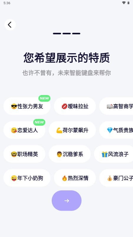 1. 在任意聊天输入框内,呈现智能键盘界面,并预先设定不同的角色类型。