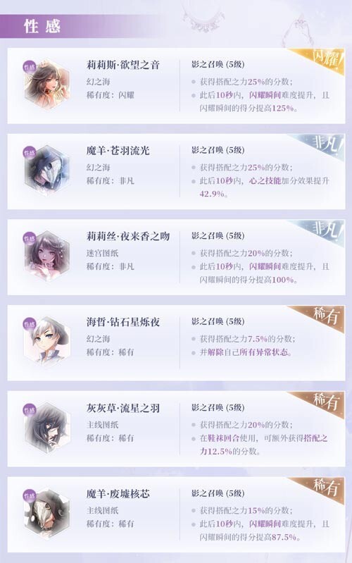 4、若想培养拥有[获得搭配之力N%的分数,此后Y秒内,心之技能加分效果提升N%]这一技能的卡片,需先掌握此类技能的最佳释放时机与操作技巧,如此才能发挥出最大效果。