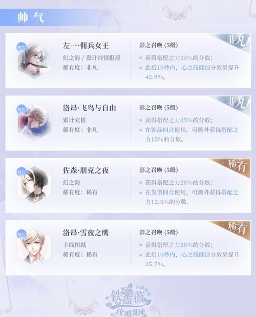 帅气程度排序为:左一·佣兵女王>洛昂·飞鸟与自由>佐森·朋克之夜>洛昂·雪夜之鹰