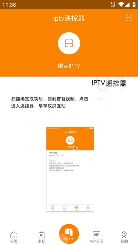 3、在手机绑定页面使用吉智视频App扫一扫,扫描绑定二维码,即可绑定成功,每台IPTV最多可绑3个手机号。