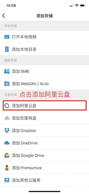 接着点击添加按钮,随后会跳转至添加存储的页面,这里以阿里云盘为例进行演示。