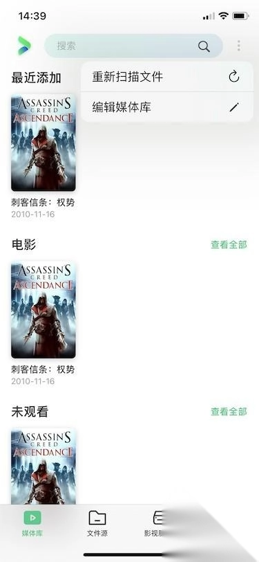 接下来点击媒体库,系统会自动检索刚才添加的文件源下的全部影片文件,依据影片文件名自动获取在线电影/剧集的相关信息与海报,并将其添加至媒体库中,影片资源会在此处展示,点击即可观看。