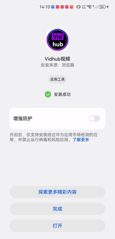 先将vidhub安装到安卓设备上