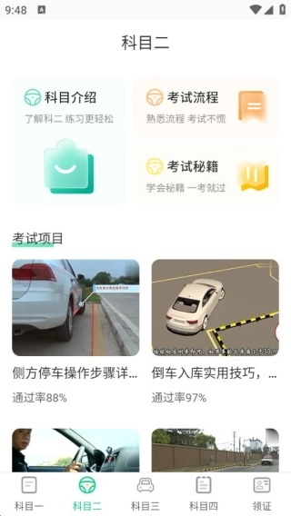 科目二的内容十分全面,从考试流程到考试秘籍,再到科目介绍,都讲解得非常详细。