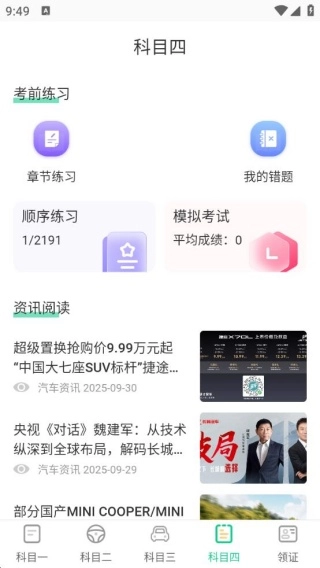 4、科目四不仅能开展考前练习,还能浏览各类资讯内容。