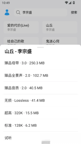 5.如需,点击歌曲对应音质栏,等待进程完成即可。