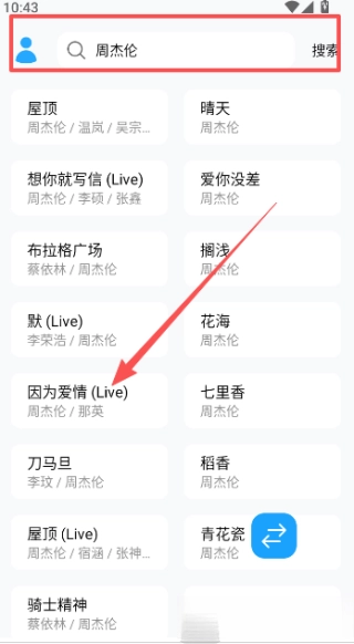 2.在搜索框中输入歌曲名称或歌手姓名,系统会自动匹配互联网上的相关资源。