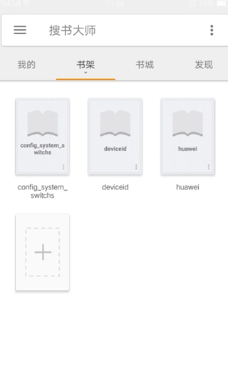 1、在手机上打开软件,在书架界面点击+号图标