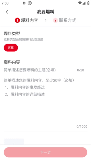 2、输入爆料类型