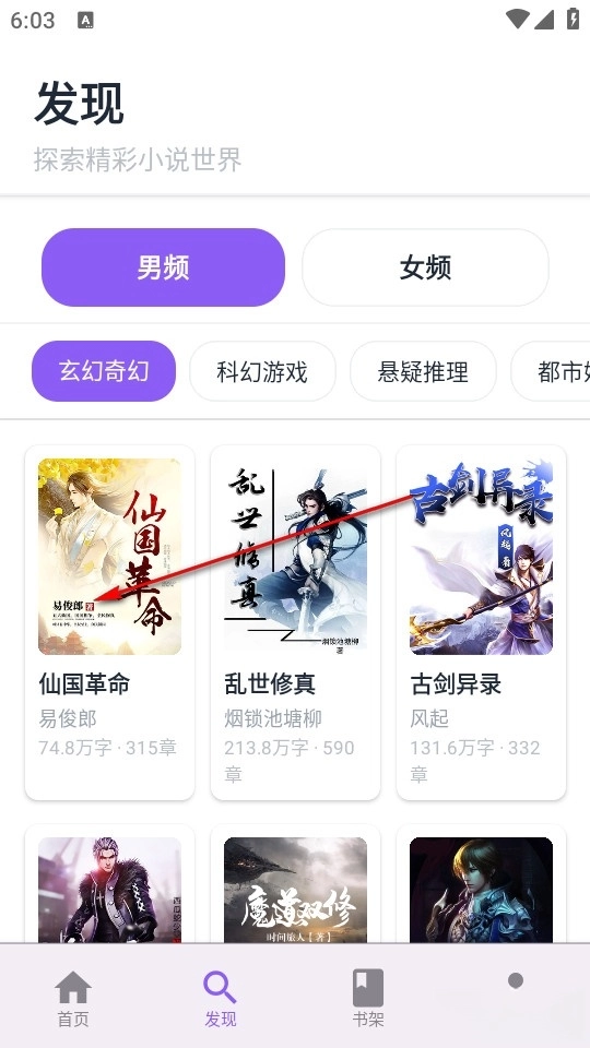 点击软件进入首页,寻找自己喜欢观看的书籍。