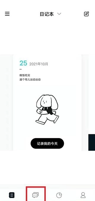 moo日记,点击选择左下角日记模块。