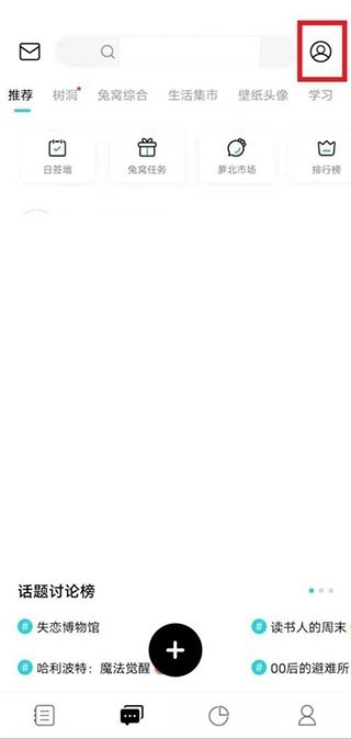 返回日记模块点击选择右上角头像。