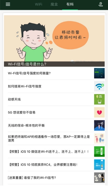 WiFi魔盒是一款功能强大的WiFi共享软件,它能为用户提供优质的上网环境,确保网络稳定运行,还能显著增强WiFi信号强度。此外,该软件便于用户随时掌握WiFi信号的实时状况,的便捷工具箱更是实用又贴心。感兴趣的用户不妨来体验一下。