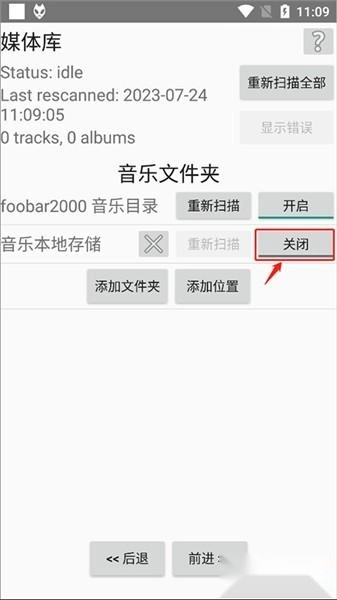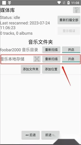 进入后把这个“开启”按钮点一下,毕竟只有打开它,才能扫描到本地存储的歌曲。