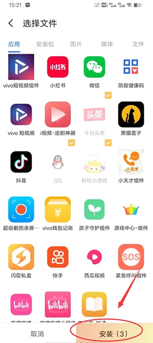 4、选择“应用”:在需要导入文件的相关选项里,挑选“应用”这一类别。