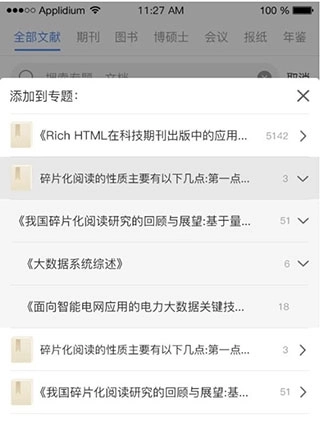 6.文献检索结果支持批量收藏至专题,在文献阅读页面也能一键完成收藏操作。
