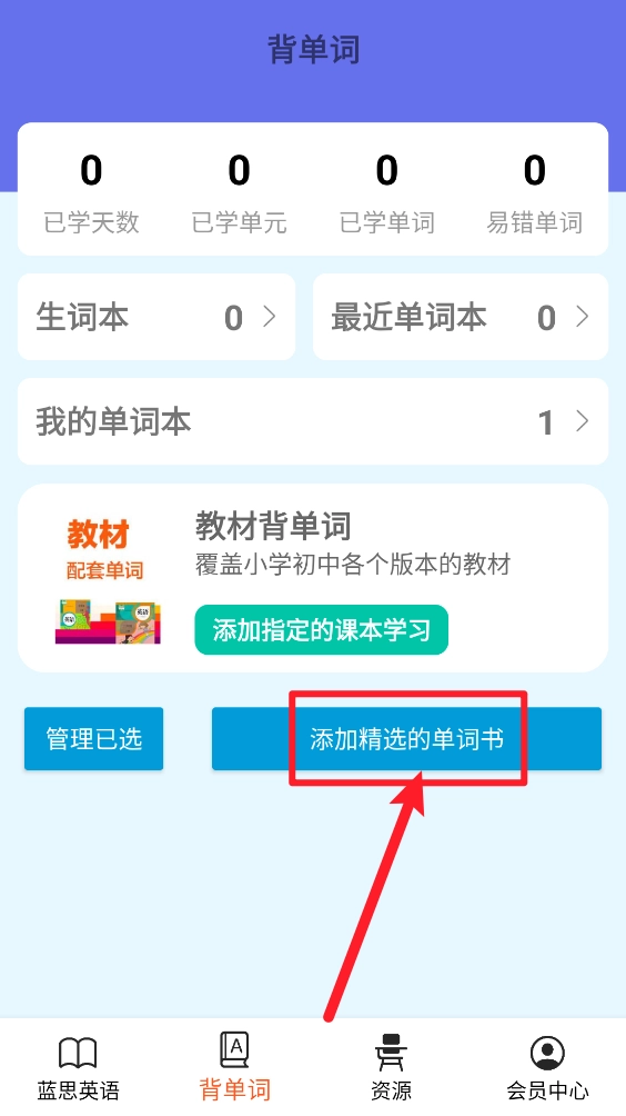 3、完成后点击"添加精选的单词书"。
