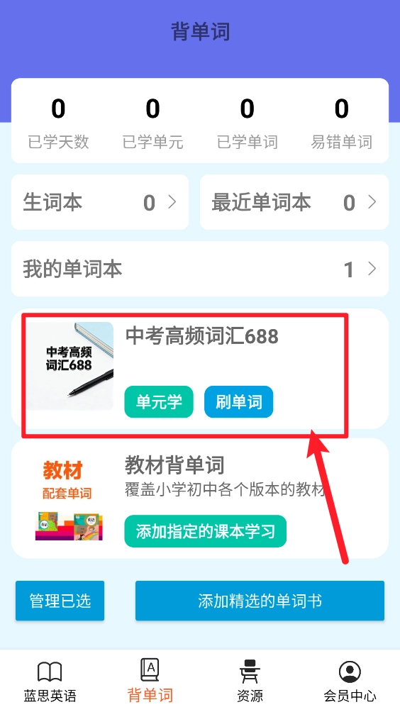 6、完成后在背单词板块就可以查看所添加的单词书。