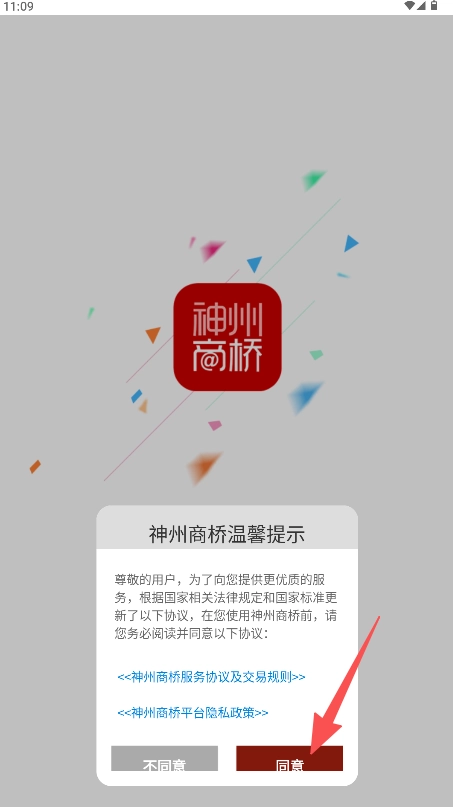 1、首次启动时仔细阅读弹窗提示点击红“同意”按钮以确认协议。
