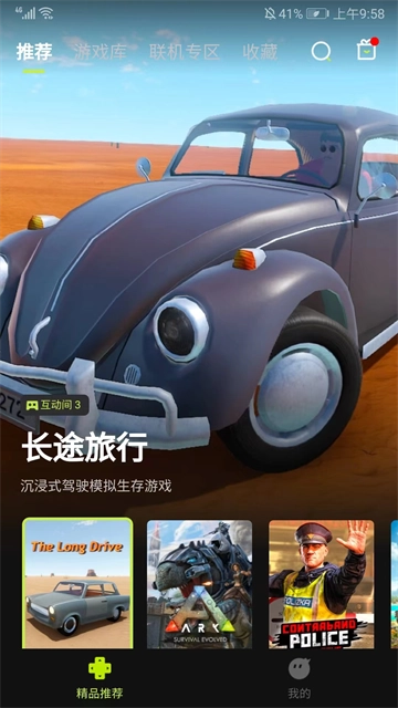 1、打开3a云游戏进入主界面后,能看到推荐、游戏库、联机专区以及收藏这几个频道,其中在推荐频道里可以浏览到系统推荐的游戏。