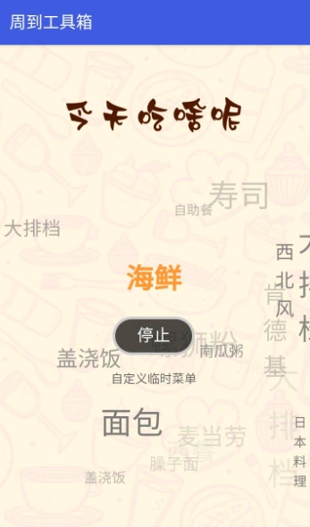 1、打开软件,选择你需要的功能,例如【今天吃什么】