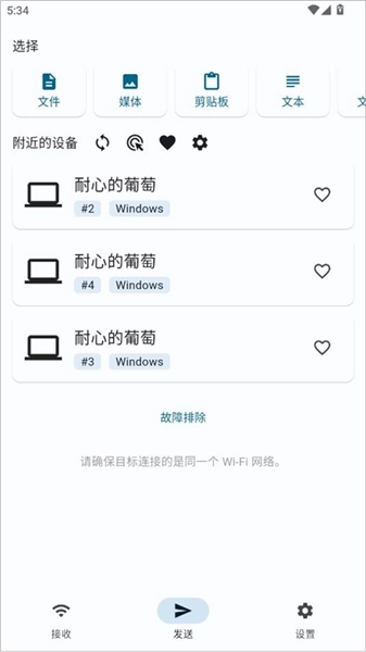 1、连接其他设备:在所有需要传输文件的设备上打开Localsend应用,保证它们处于同一网络环境,且能在设备列表里看到对方的设备名称。