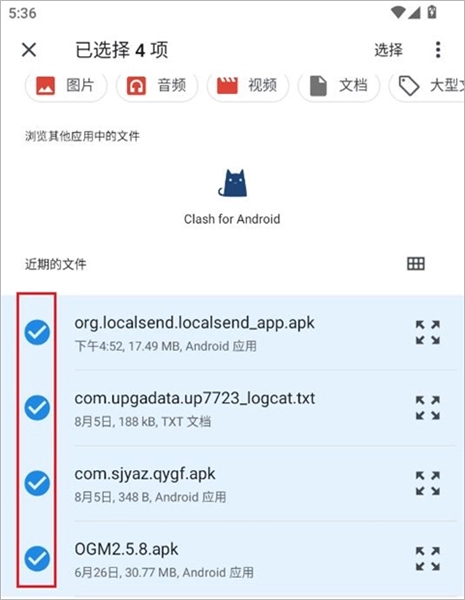 2、选择文件时,在传输界面长按想要传输的文件,就能实现多选操作。