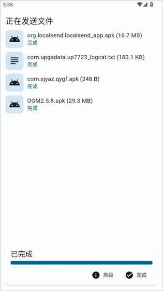 5、连接成功后,即可一次性传输所选文件。