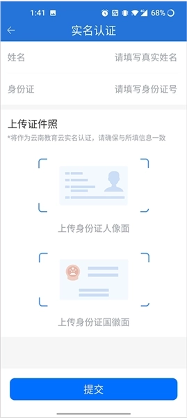 1、用户登录成功后,若尚未完成认证,在“我的服务”板块的顶部会显示“未实名,请实名认证”的提示,点击该提示即可进入实名认证流程,页面将跳转至下图所示界面: