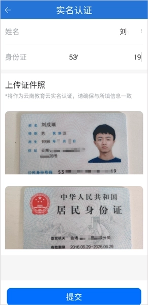 4、点击我的服务顶部的蓝色区域,就能查看实名认证后的个人信息