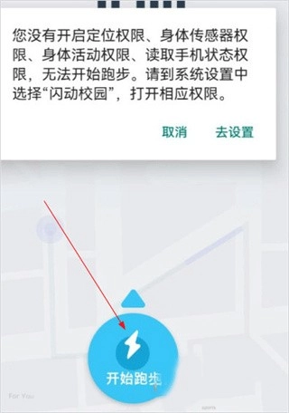 2、进入页面,设置权限,点击“开始跑步”即可。
