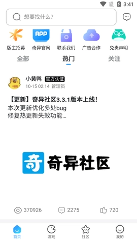 奇异社区最新推出的3.3.2版本是一款专为爱好者量身打造的综合性互动交流平台,致力于为全球范围内的移动游戏玩家提供一个开放、自由且充满活力的社区环境。无论你是刚刚踏入世界的新手,还是拥有多年经验的资深玩家,这里都将成为你探索游戏乐趣、提升竞技水平的理想之地,在这个平台上,汇聚了来自五湖四海的顶尖玩家、技术达人和游戏发烧友。他们不仅热衷于分享自己在各类热门中的实战经验、通关技巧与独到策略,更乐于深入探讨游戏机制背后的逻辑与设计美学。