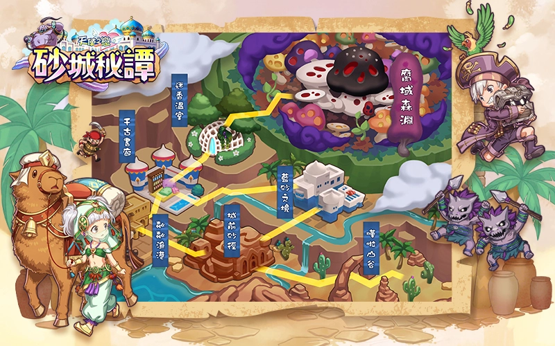 新增【卡比鲁】这里新增了7张全新地图,分别是「哗啦山谷」、「城前砂径」、「蓝砂之境」、「粼粼渔港」、「千古书廊」、「迷香温室」,还有那片满是未知与危险的「腐域森渊」。