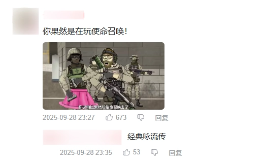 这一充满讽刺感的情节很快在玩家社群里引发热烈讨论,不少网友在官方账号的评论区玩起了调侃COD的游戏梗。
