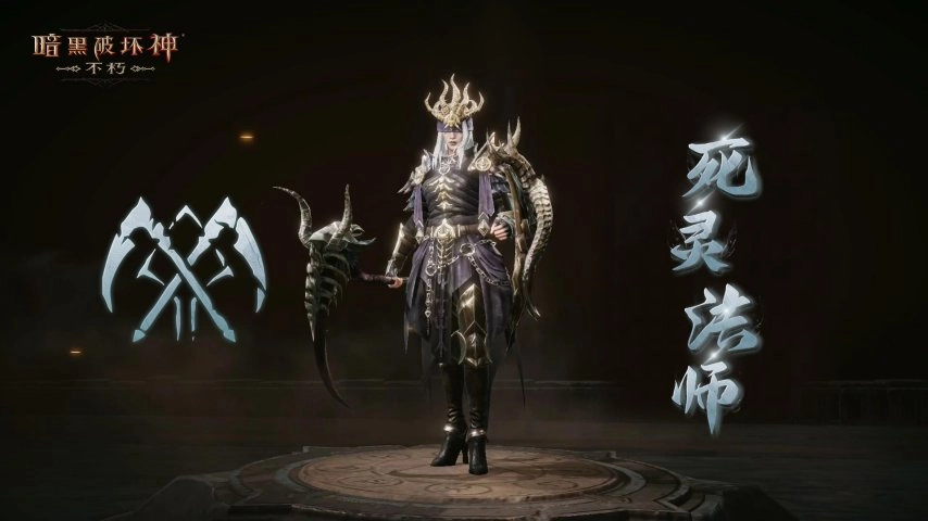 死灵法师手执兽骨镰刀和盾牌,与在月色下驱策平衡之力,令骸骨化作屏障,阻滞瘴气的侵袭。