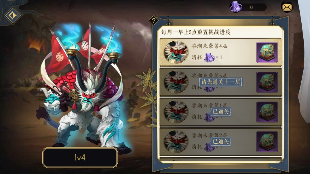 ②兽潮来袭:兽潮来袭是获取进阶材料的副本,不管能不能成功击杀BOSS,都能得到无相灵丹,因此获取无相灵丹的难度并不高。