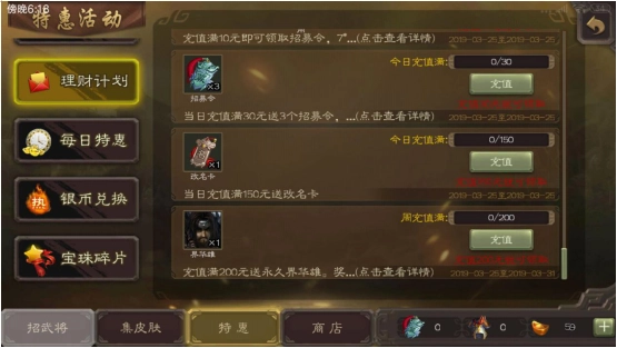 获取界华雄的方式很简单,只要每周充值累计满200元就能得到他。这里要说明的是,此充值并非充消活动,也就是说,我们充值200元后,无需把这200元对应的元宝全部消耗掉,就能直接领取该武将。