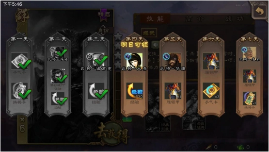 首先,游戏里有两个华雄,一个是来自“一将成名”系列的华雄,另一个则是界限突破版本的华雄。其中,获取普通华雄的方式十分简单。从下图能看到,只要连续登录5天就能拿到华雄。这个武将是可以免费获取的,我们既不用消耗招募令去抽取,也不需要用将魂来合成,只需保持登录,到第五天就能免费得到这个武将了。